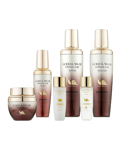 Прибирає зморшки та лущення, заспокоює шкіру та зменшує пігментацію; зволожує та живить; робить шкіру здоровою, молодою та сяючою. Корейська антивікова косметика у наборі 3W Clinic Gold And Snail Intensive Care Set має багато активних компонентів. Формули засобів ґрунтуються на фільтраті слизу равлика та золоті, які є потужними антивіковими компонентами.